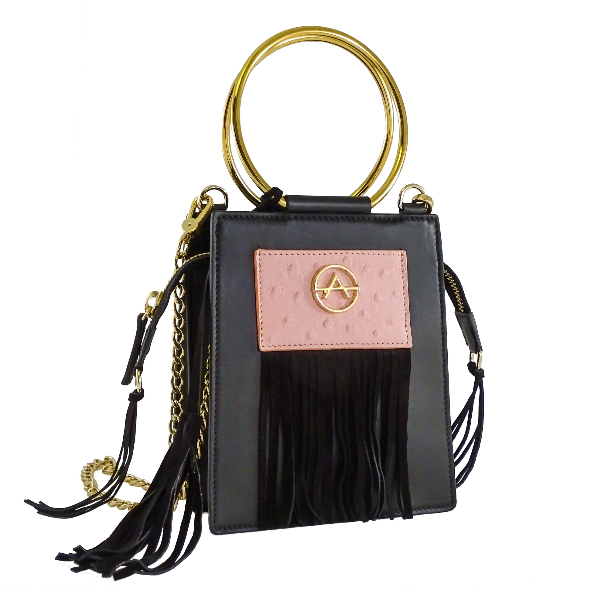 Meet the Nano Frame Bag, a chic miniature take on the iconic Badessa Frame Bag. Designed for the fashion-forward, this mini bag features a striking gold metal ring handle, making it easy to hold with style.